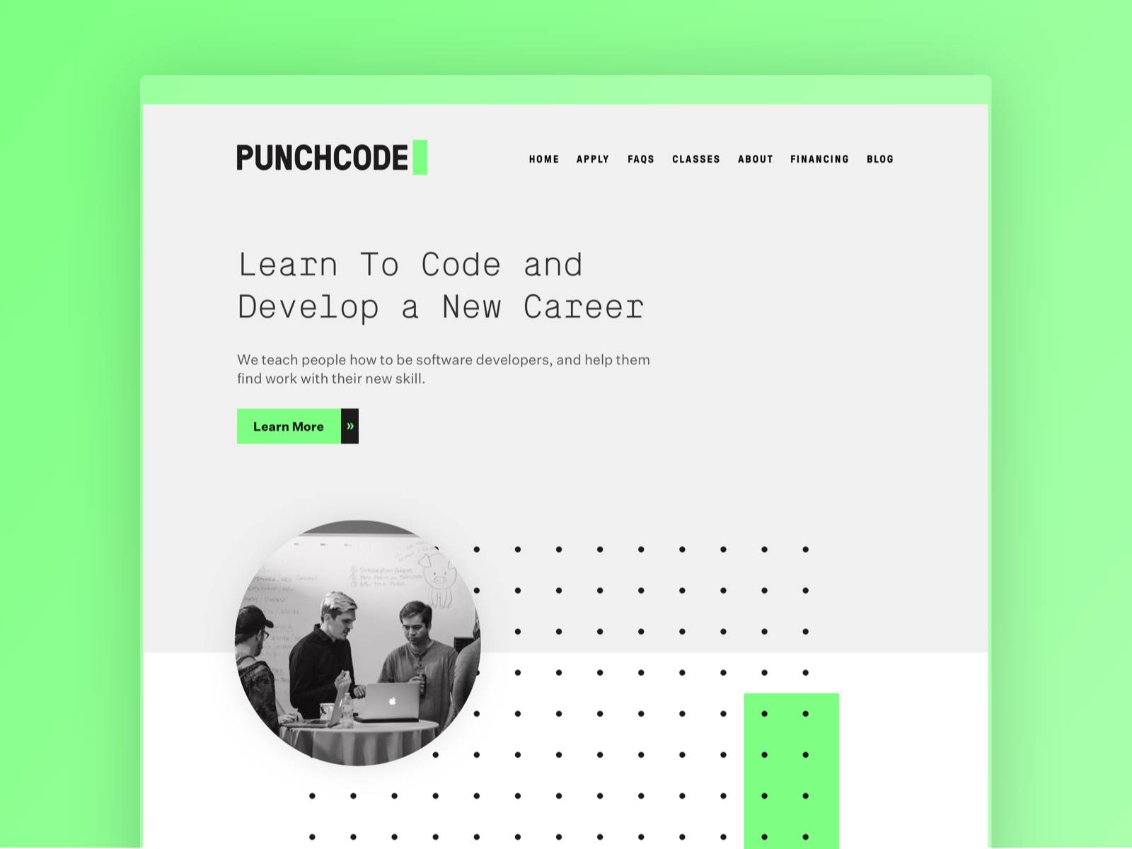 While at Motel, I helped name, brand, and design the site for PunchCode, a school in Las Vegas, NV that teaches folks how to code and helps them develop a new career.